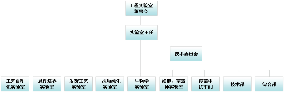 國家工程實驗室的運行和管理實行理事會領導下的實驗室主任負責制。理事會下設實驗室主任、技術委員會、菌毒種研究室、自動化控制研究室、懸浮培養(yǎng)研究室、發(fā)酵培養(yǎng)研究室、抗原純化研究室、生物學研究室、疫苗中試車間、技術部、綜合部12個部門。