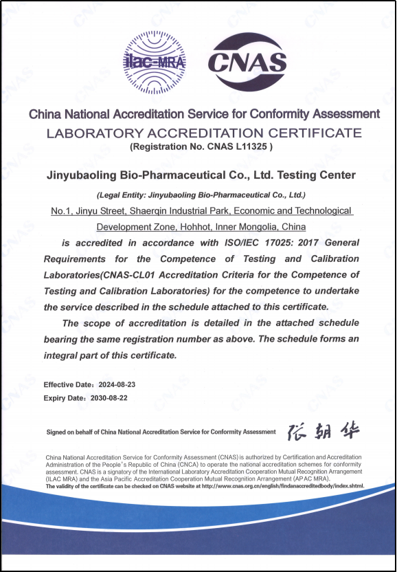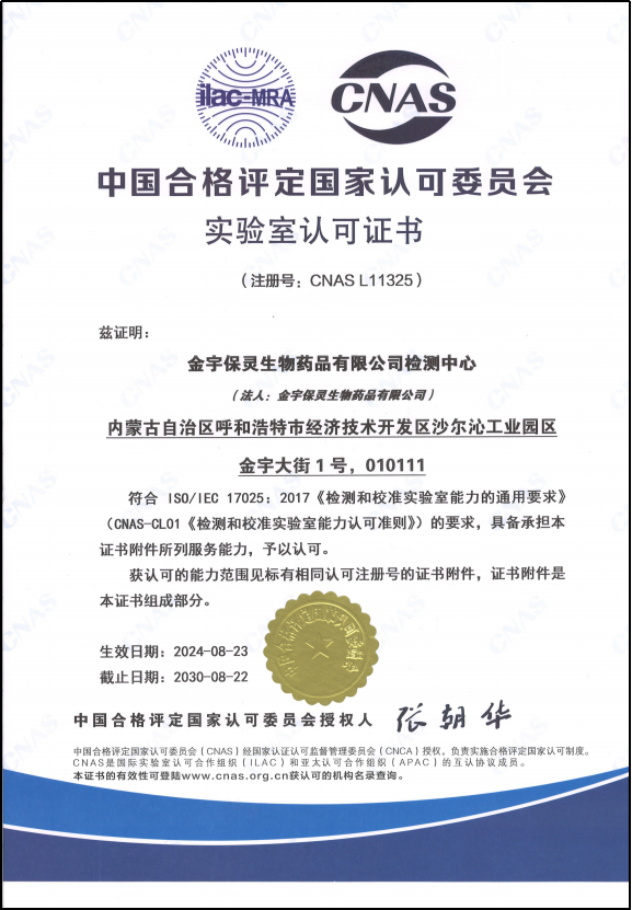 為保障產(chǎn)品質量,提升質量控制能力,確保檢測結果準確性,公司檢測中心于2018年首次通過中國合格評定國家認可委員會(CNAS)認可。自初次申請認可以來,管理體系持續(xù)有效運行,歷經(jīng)多次復評審、擴項,在2024年順利完成CNAS的認可周期換證。通過CNAS認可的能力范圍涵蓋微生物檢測領域、化學檢測領域、動物檢疫領域、實驗動物檢測領域的50余項檢測項目。
