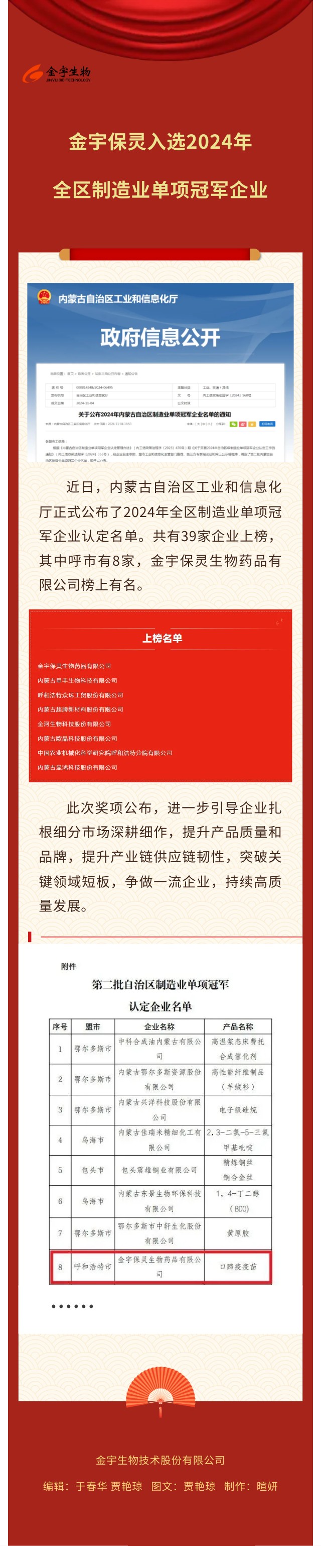金宇生物入選2024年全區(qū)制造業(yè)單項(xiàng)冠軍企業(yè)