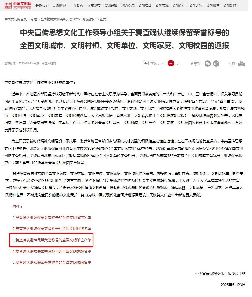 5月23日,全國(guó)精神文明建設(shè)表彰大會(huì)在京召開。從公布結(jié)果獲悉,金宇生物技術(shù)股份有限公司蟬聯(lián)“全國(guó)文明單位”榮譽(yù)稱號(hào)。從2020年成功獲評(píng)第六屆全國(guó)文明單位至今,公司連續(xù)5年保持該項(xiàng)殊榮。