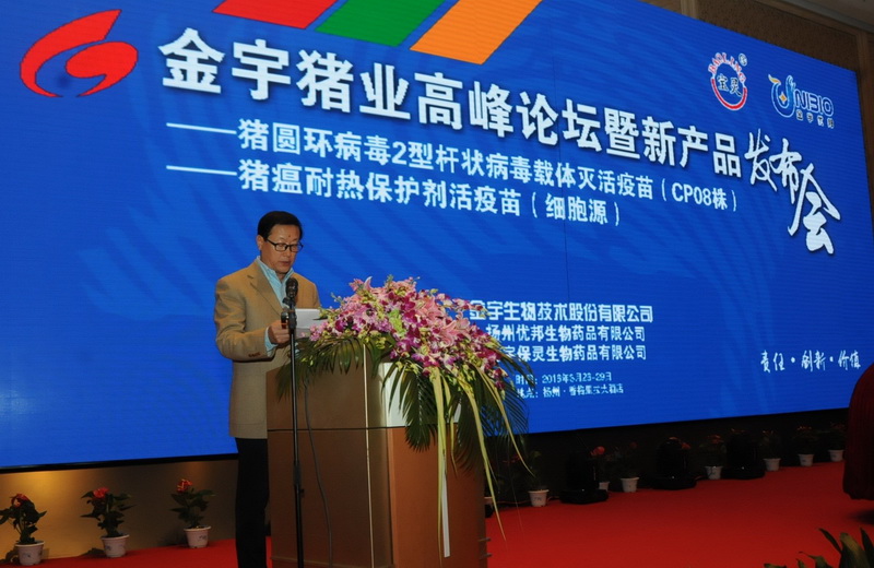 2016年3月27日,由金宇生物技術(shù)股份有限公司(生物股份,股票代碼:600201)主辦的,以“創(chuàng)新,引領(lǐng)未來”為主題的“金宇豬業(yè)高峰論壇暨新產(chǎn)品發(fā)布會”在揚州香格里拉大酒店隆重召開。全國生豬養(yǎng)殖龍頭企業(yè)代表、各大經(jīng)銷商和多位國內(nèi)知名專家、教授及學者受邀參加了此次會議,與會人員達到三百余人。共同見證了金宇生物重磅創(chuàng)新產(chǎn)品圓立優(yōu)(豬圓環(huán)病毒2型桿狀病毒載體滅活疫苗(CP08株))和豬瘟耐熱保護劑活疫苗(細胞源)上市的歷史性時刻。
